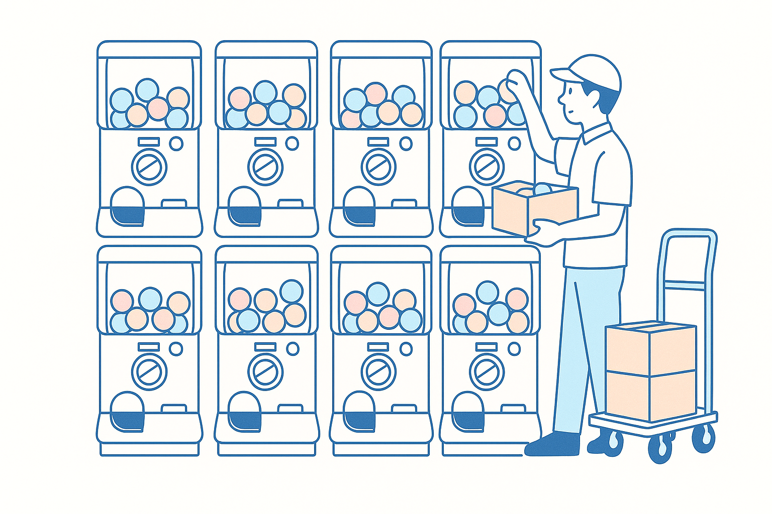 空きスペースを有効活用できる、柔軟なガチャマシンのレンタルサービスを提供しています。店舗前、商業施設内、カフェ、イベント会場など、さまざまな場所に設置可能です。機材はすべて当社が用意し、週ごとの商品補充・入れ替えや機械メンテナンスも当社が担当します。設置いただくだけで、追加の人件費や手間をかけずに収益アップと集客効果が期待できます。